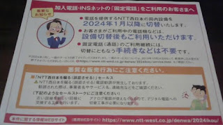 電話を提供するNTT西日本の局内設備を2024年1月以降に切り替えいたします。